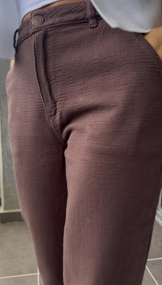 Jean Wide Leg Rígido con Textura Café REF 125208