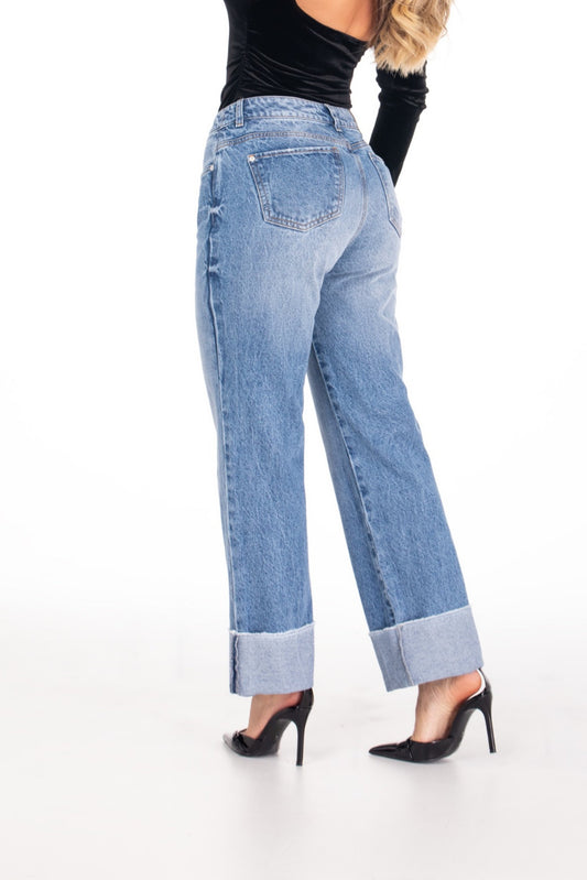 Jean Wide Leg Rígido Con Dobladillo REF 125209