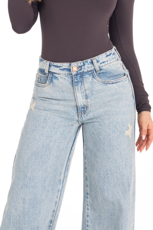 Jean Wide Leg Rigido Con Rotos Azul Claro REF 125231