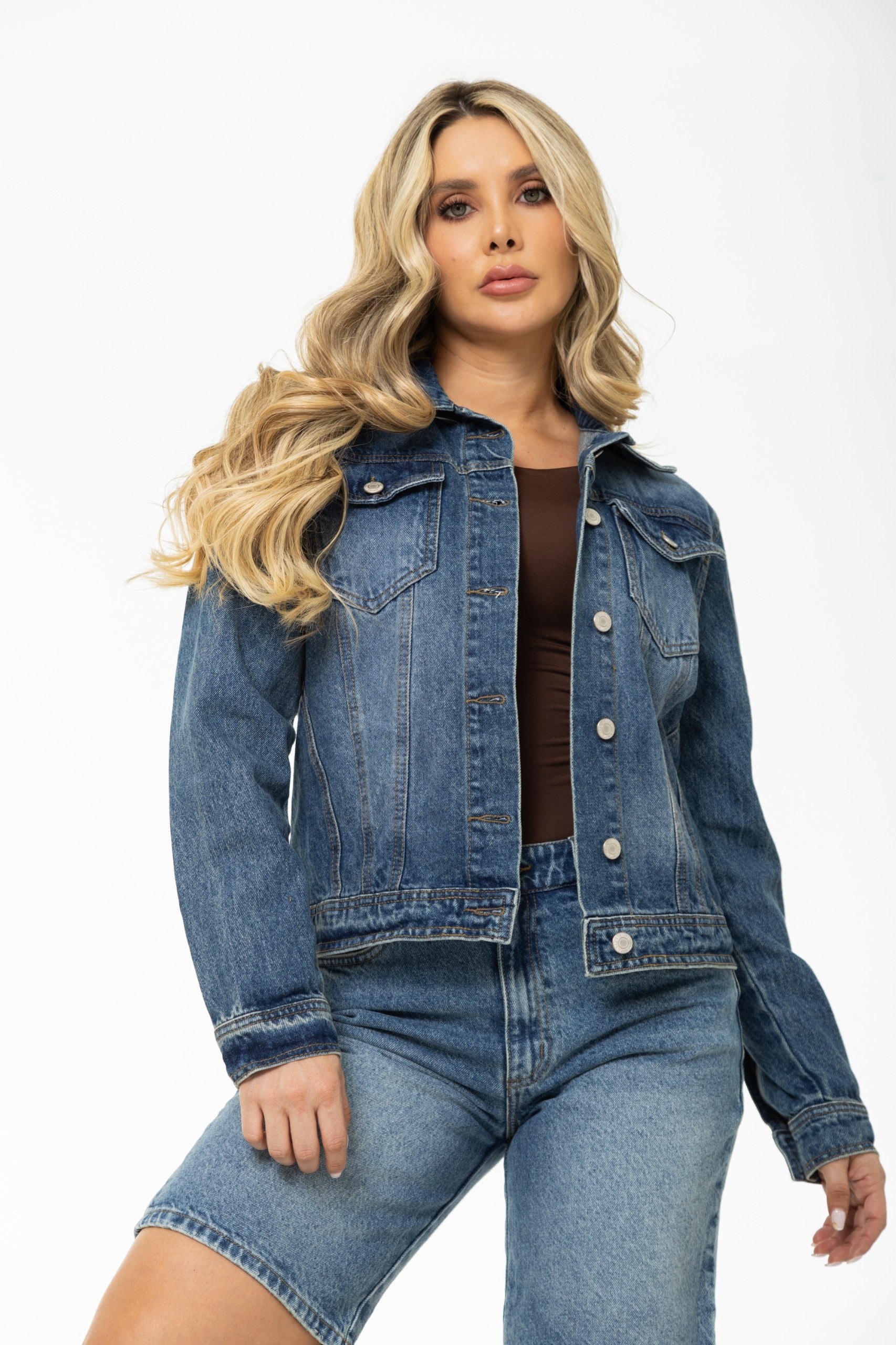 Chaqueta de denim.   Tela 100 % rígida en tono oscuro.   2 bolsillos delanteros funcionales.   Diseño con cortes traseros que aportan un estilo único.   Una pieza clave que combina estilo y funcionalidad en todo momento.