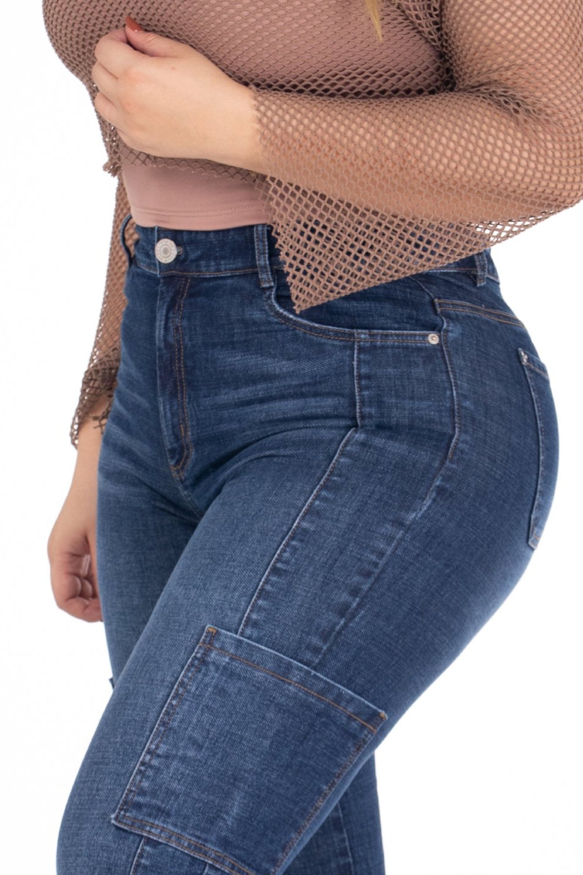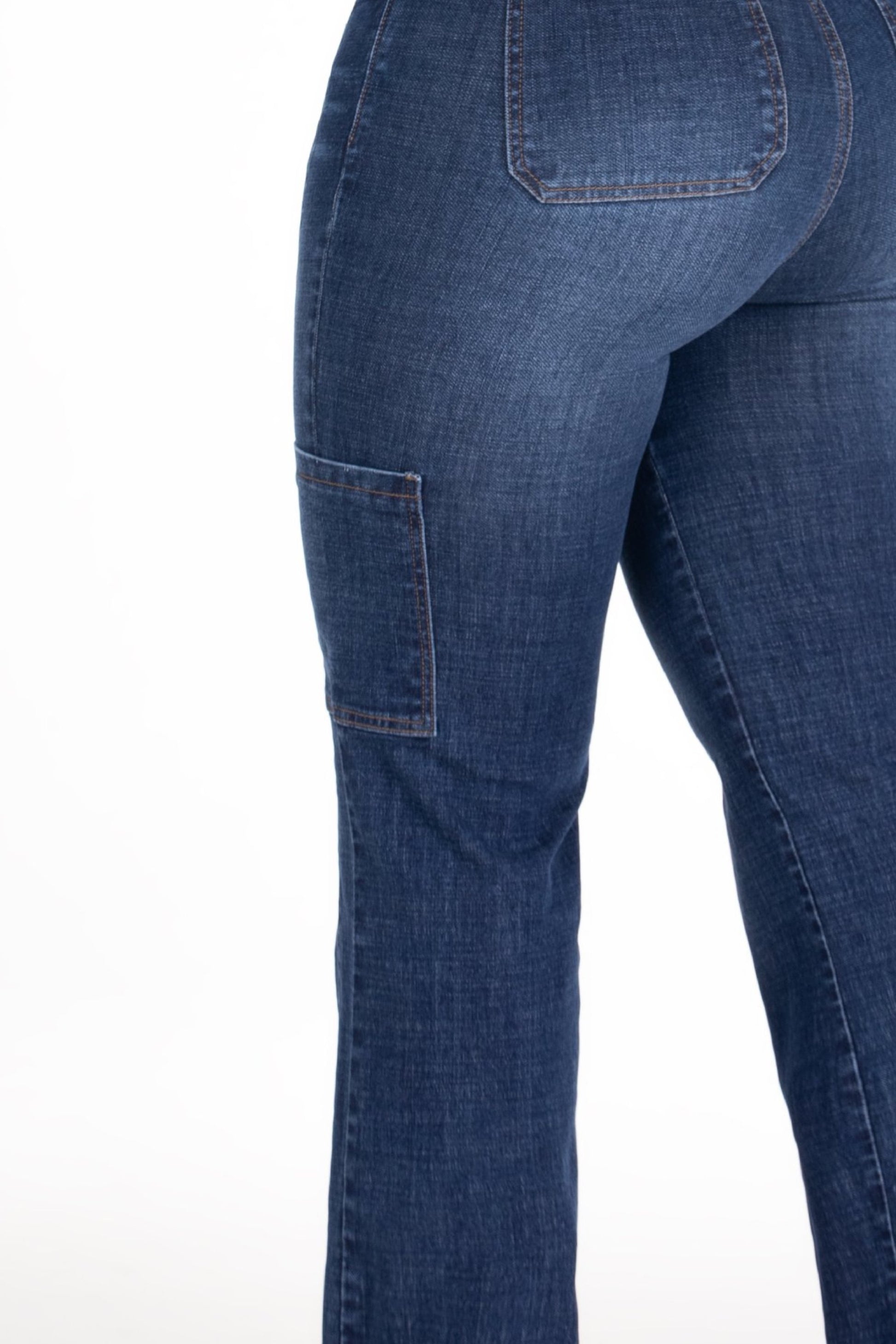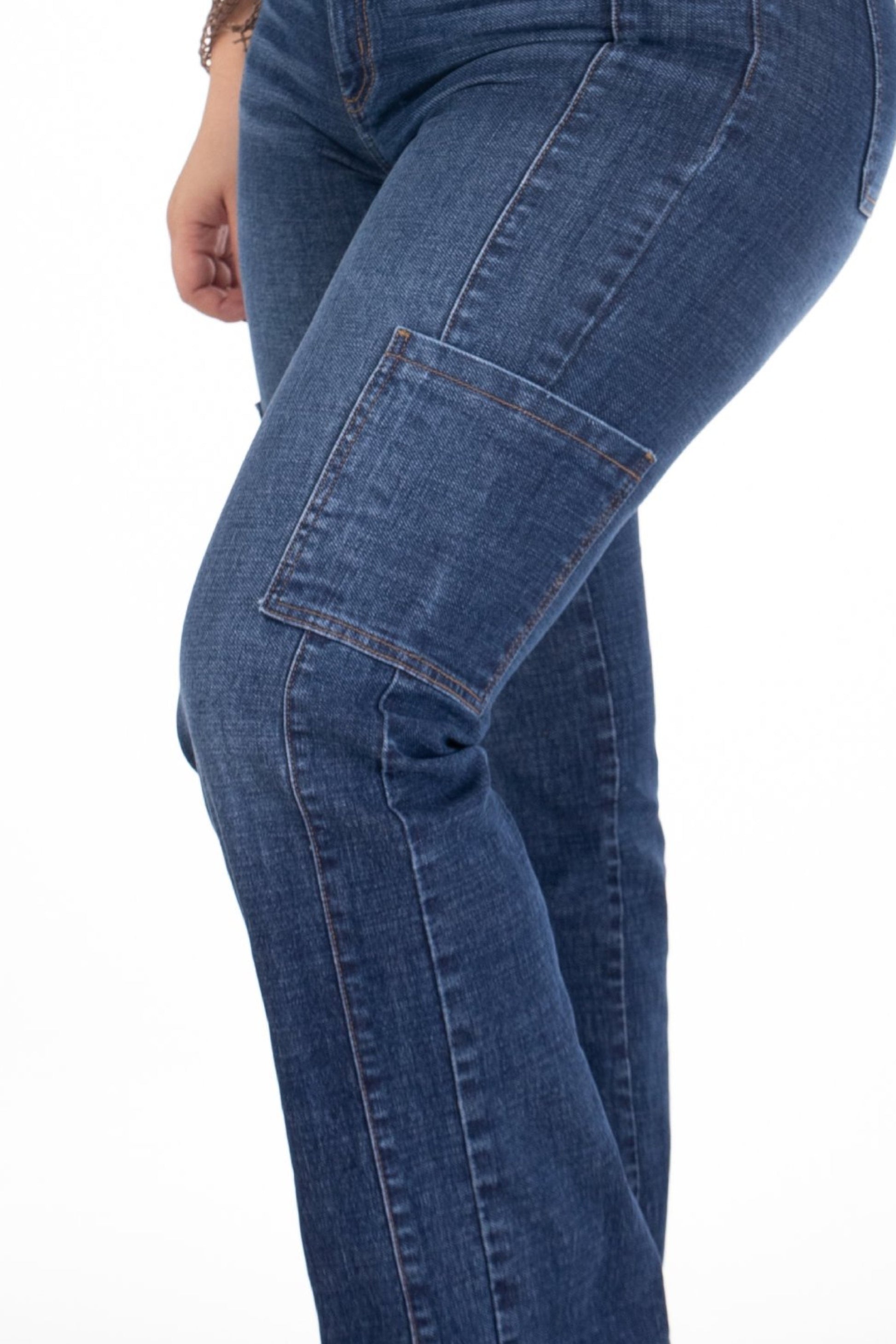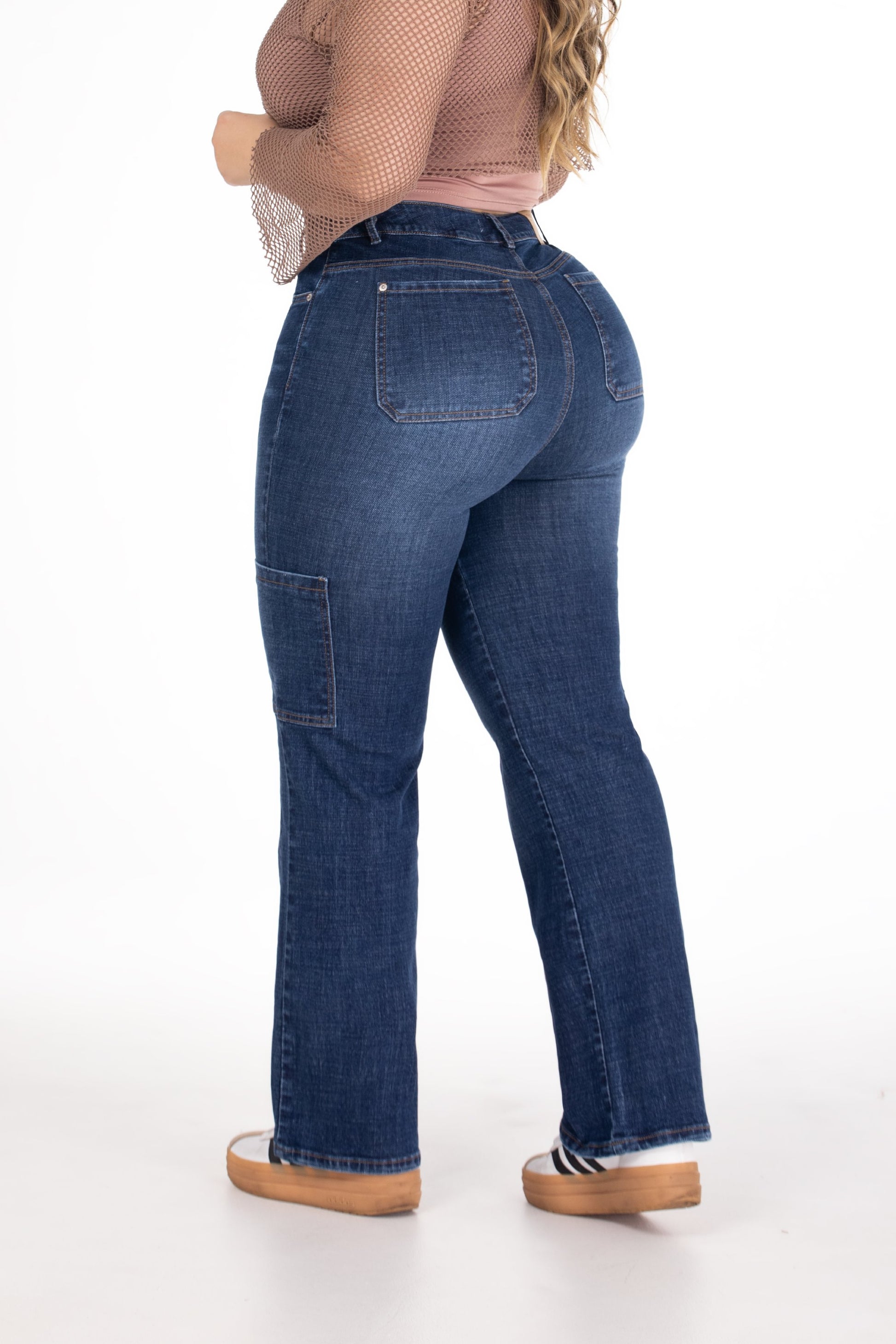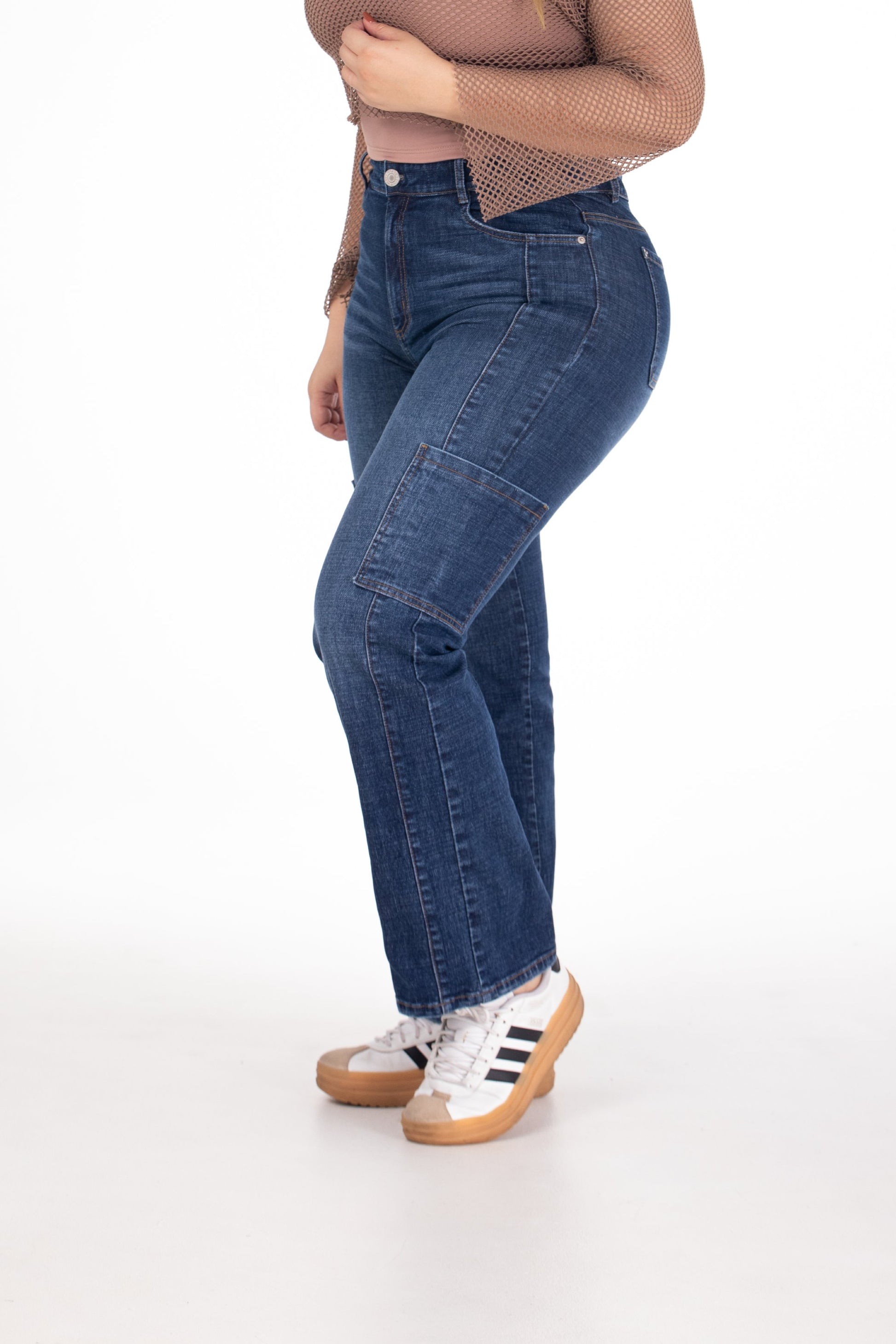 Jean Cargo con Corte Vertical Stretch Azul Oscuro REF 225205 Plus