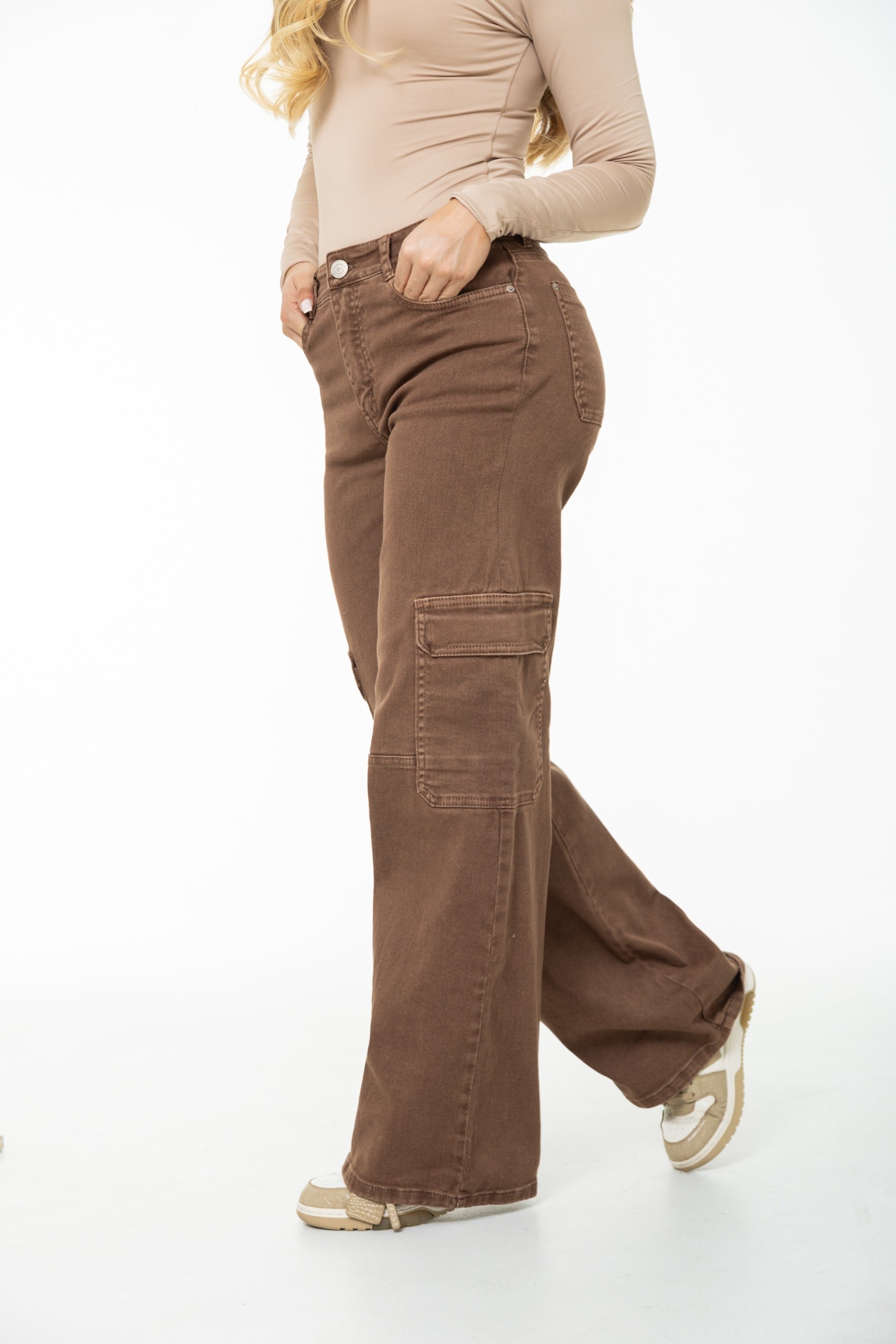 Jean Cargo. Con 2 bolsillos laterales funcionales. Confeccionado en tela Stretch de gran comodidad. Color en tendencia que realza cualquier look. Una prenda práctica y versátil que combina confort y estilo urbano.