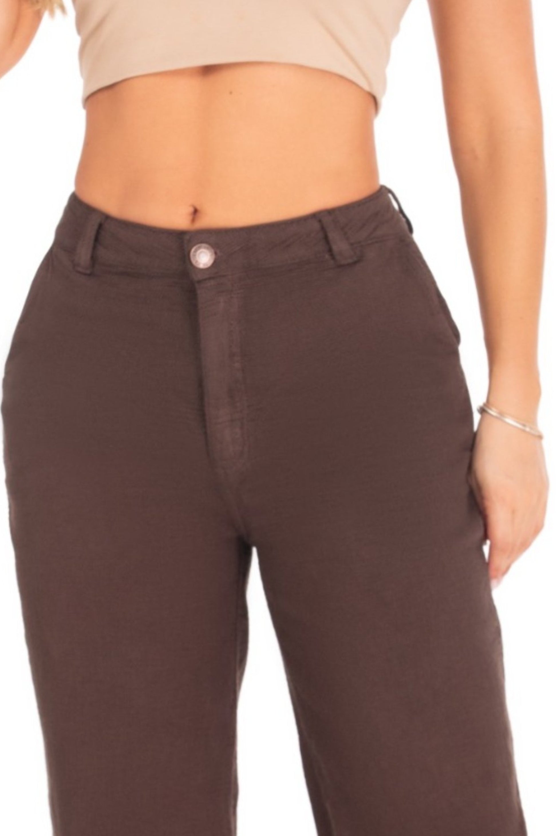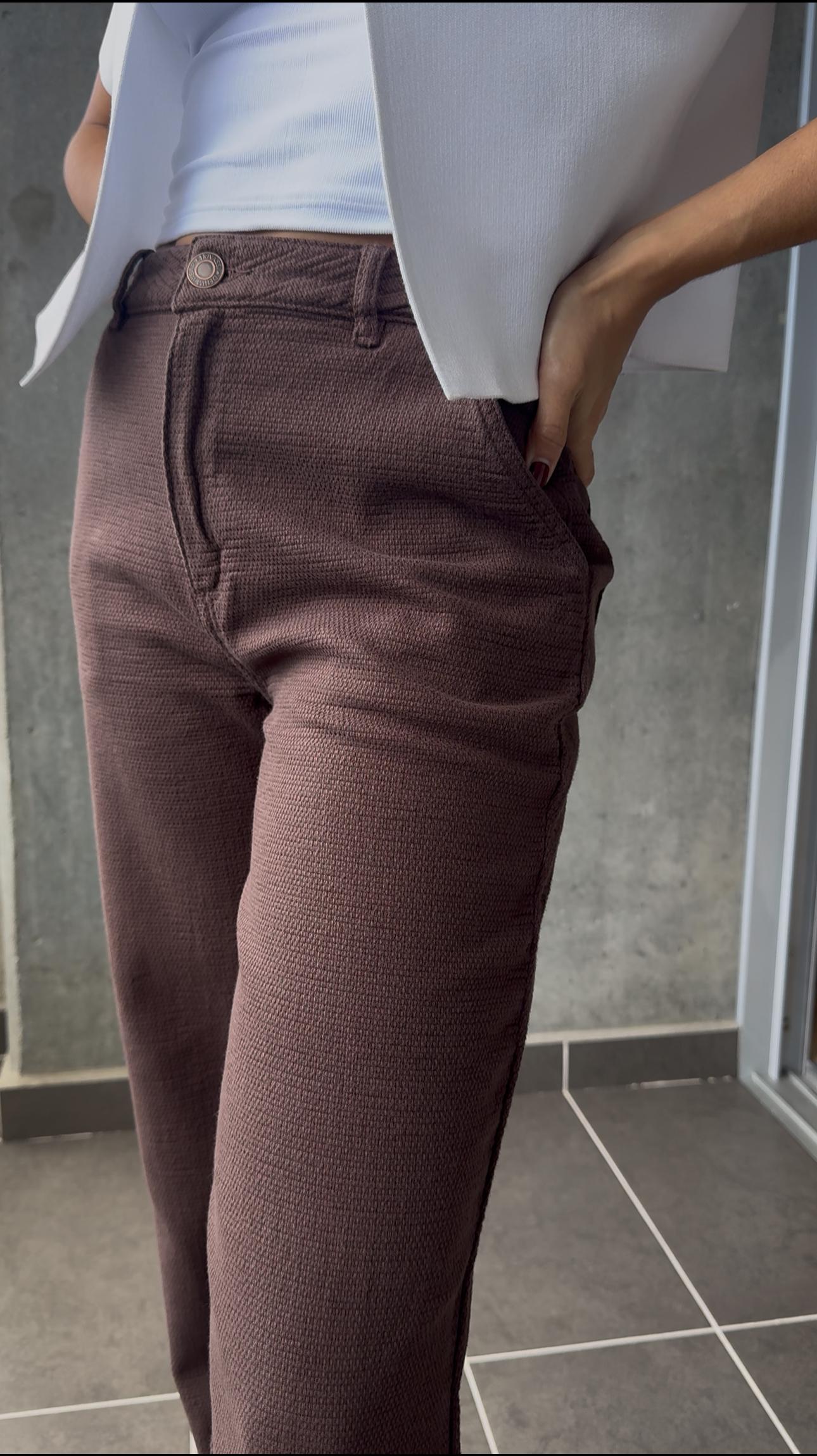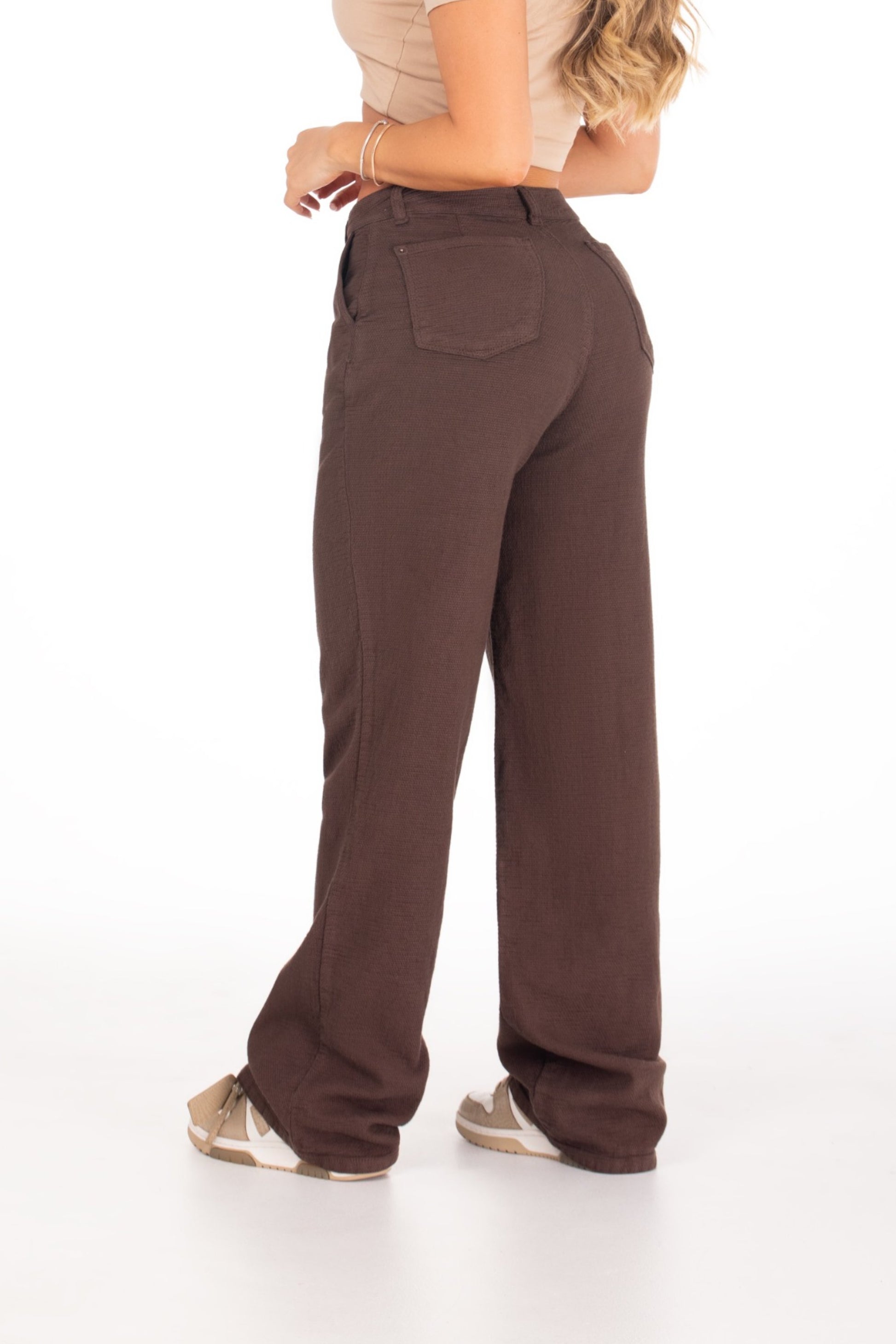 Jean Wide Leg Rígido con Textura Café REF 125208