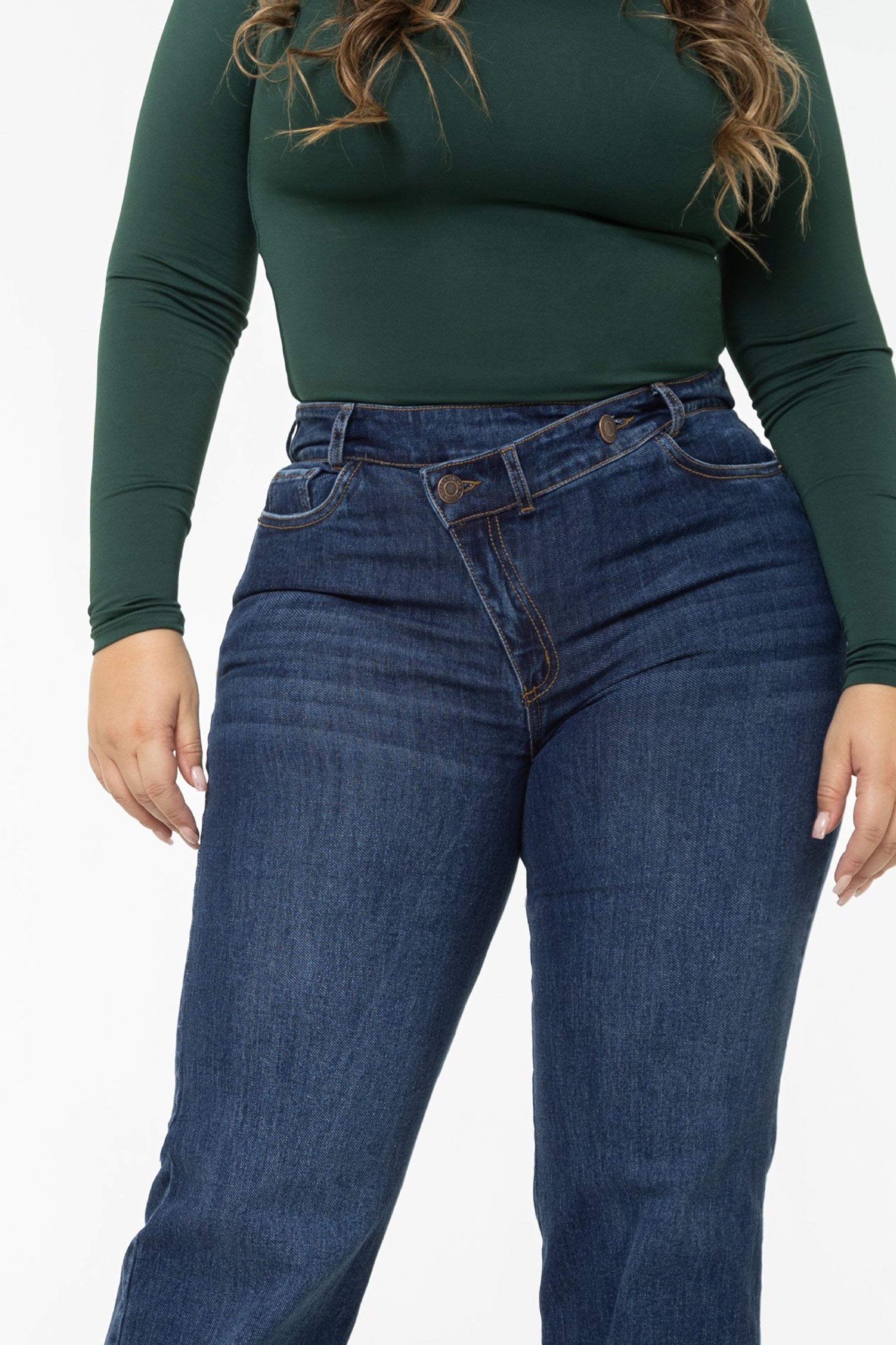 Jean Wide Leg Pretina Cruzada Stretch REF 225408 Plus