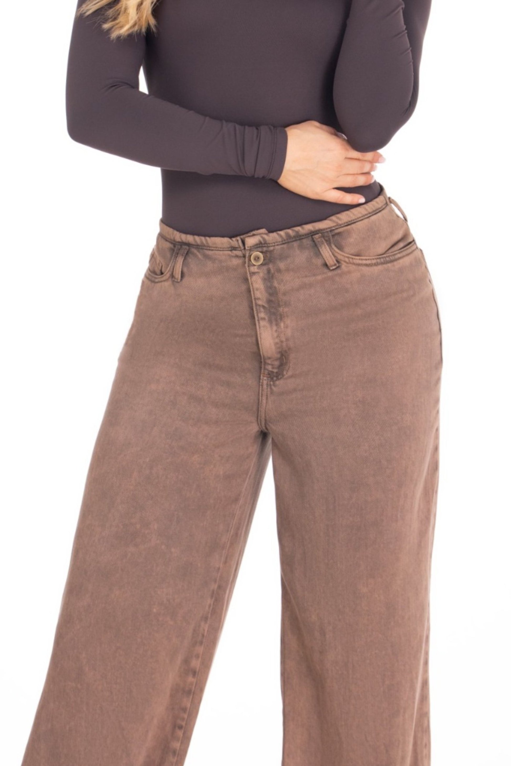 Jean Wide Leg Sin Pretina Café REF 125203
