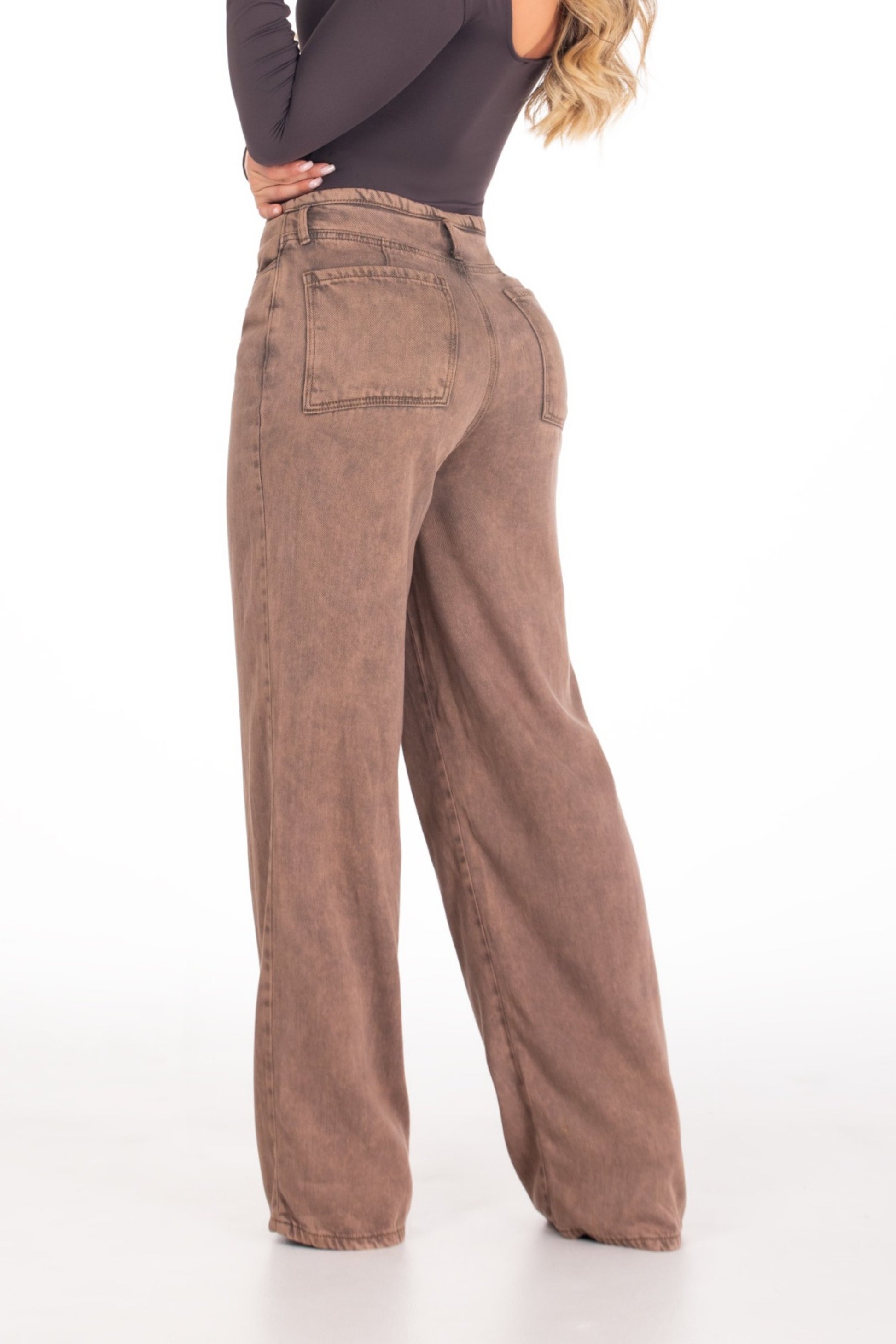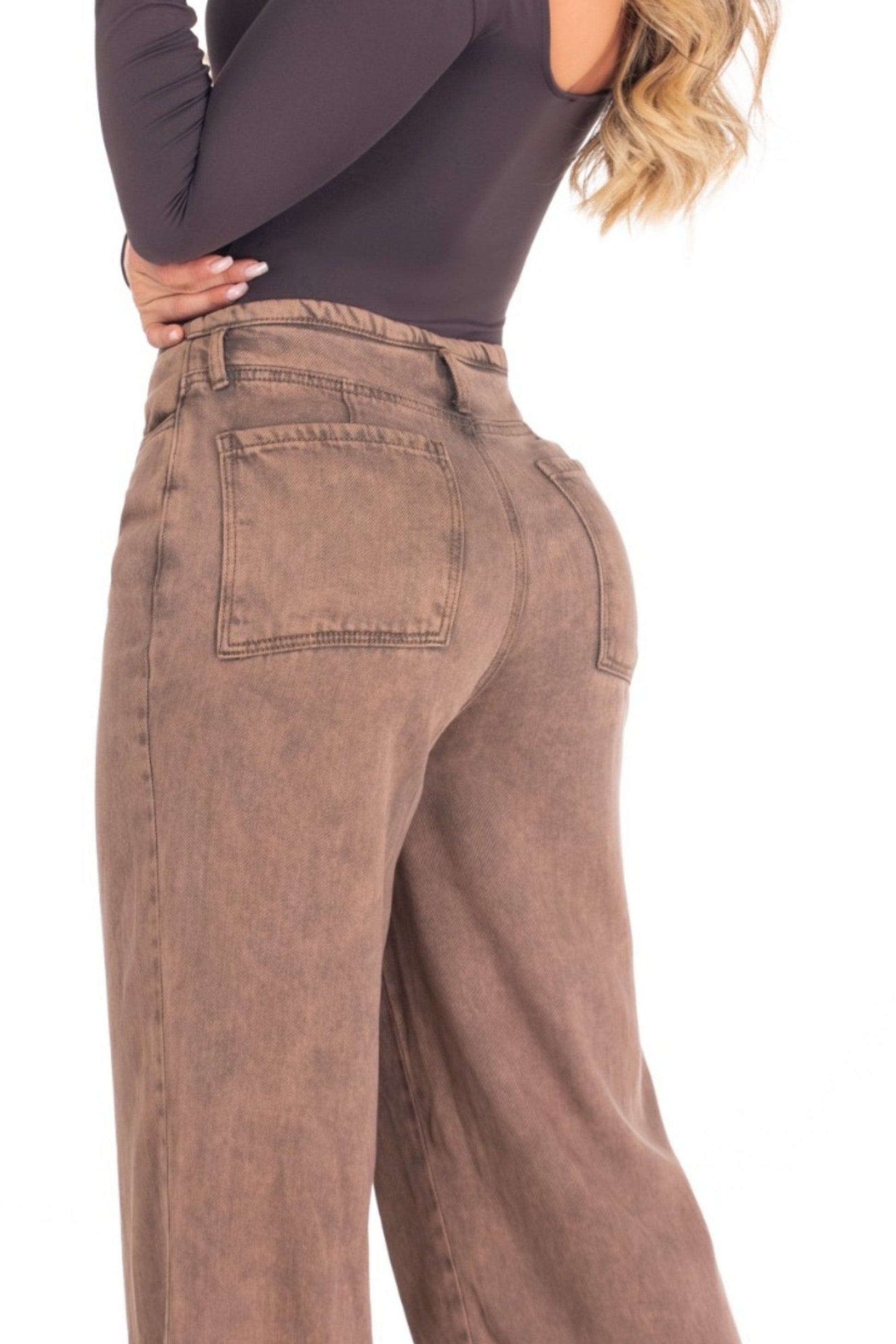 Pantalón sin pretina.   Tiro medio.   2 bolsillos traseros.   Confeccionado en tela rígida y liviana para mayor comodidad.   Color café de tendencia.   Un diseño minimalista y moderno, perfecto para looks frescos y urbanos.