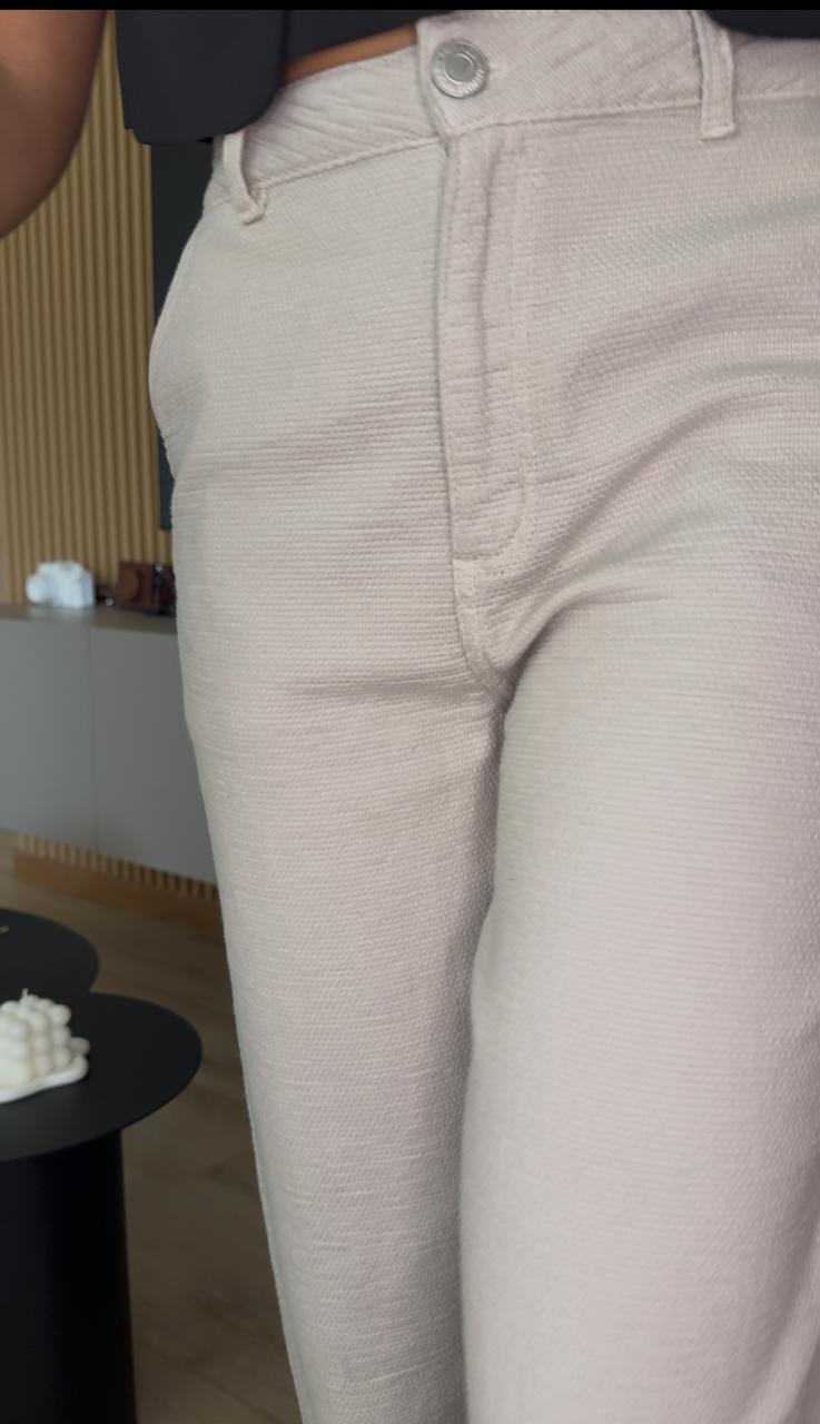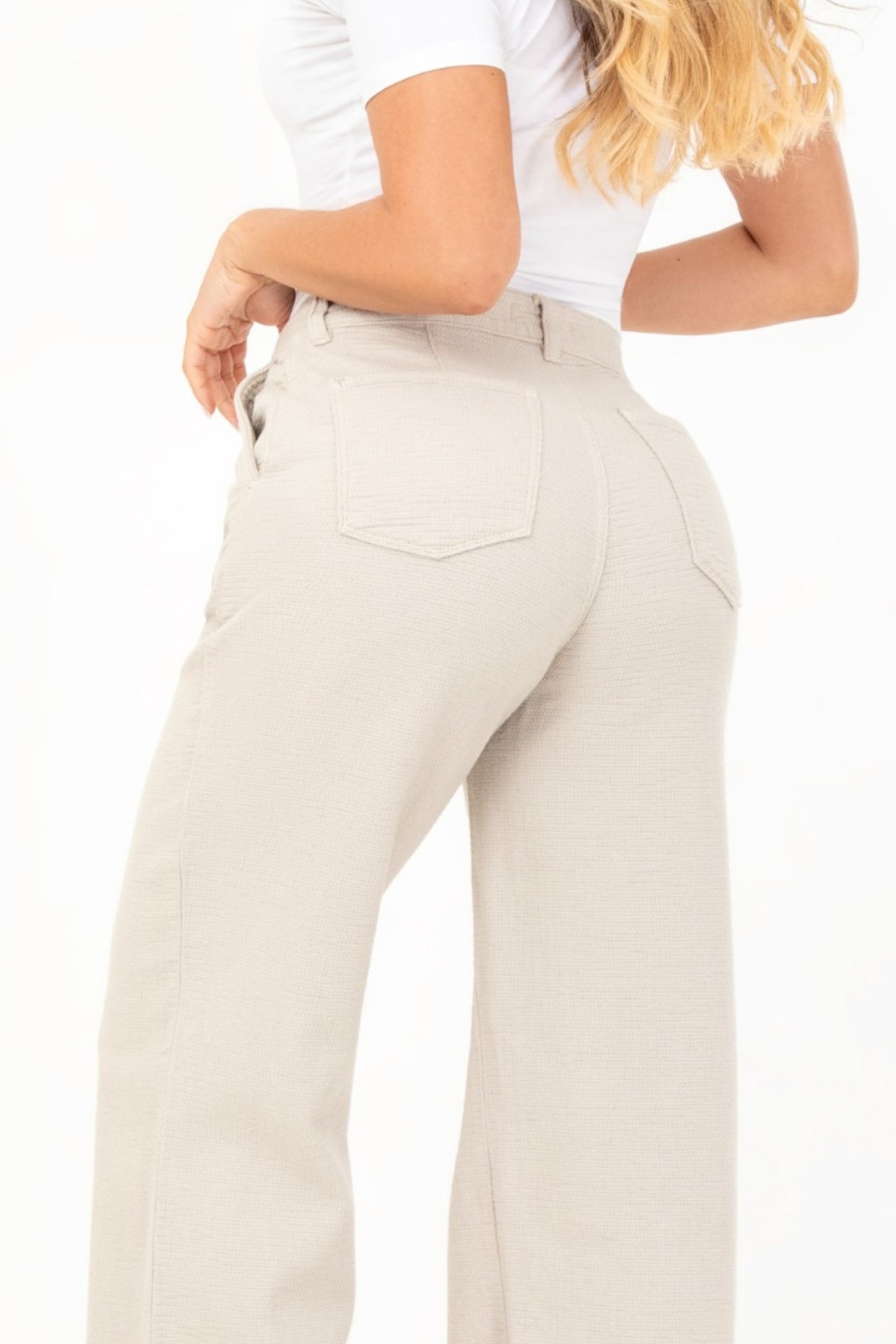 Jean Wide Leg Rígido con Textura Tipo Galleta Beige REF 125104