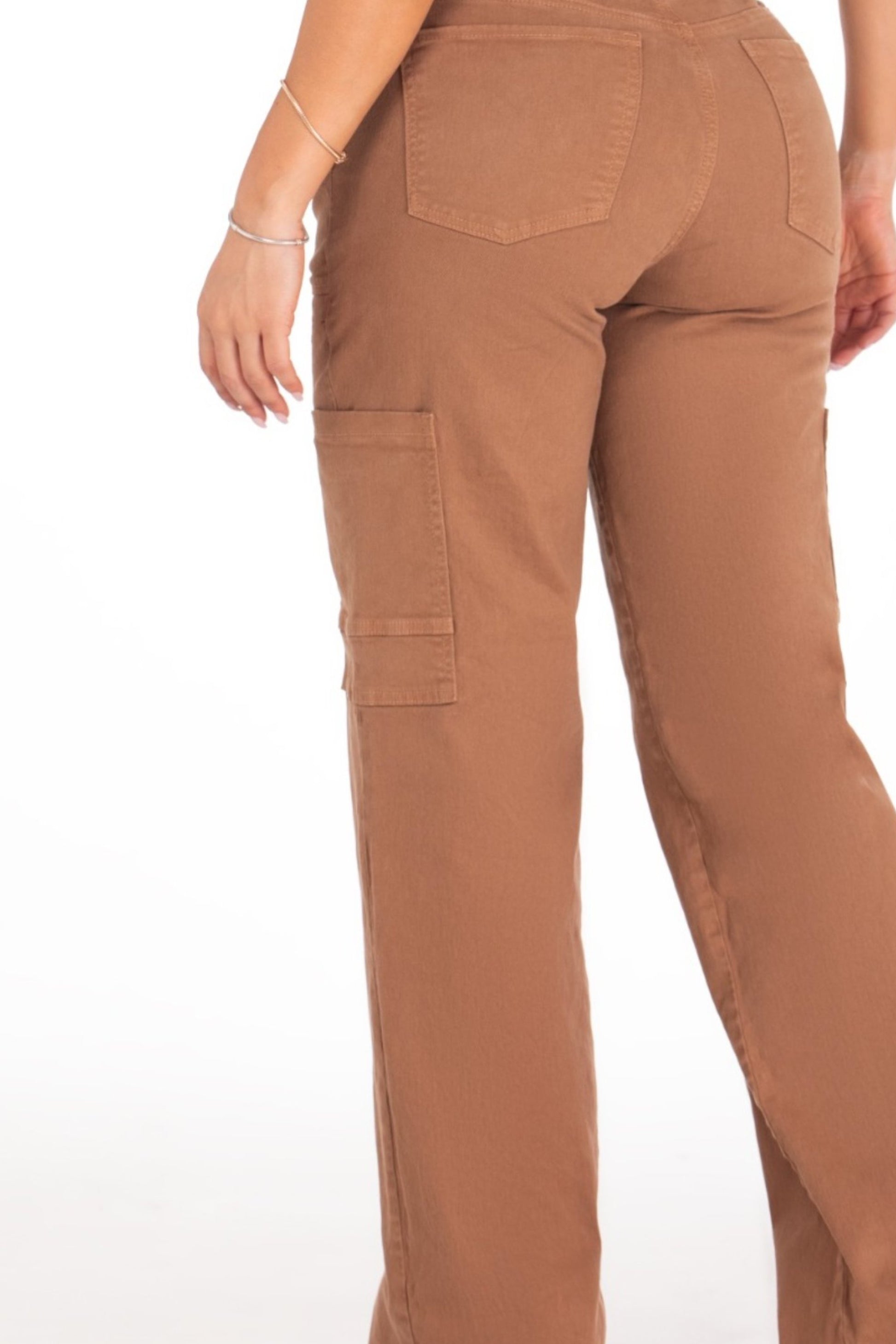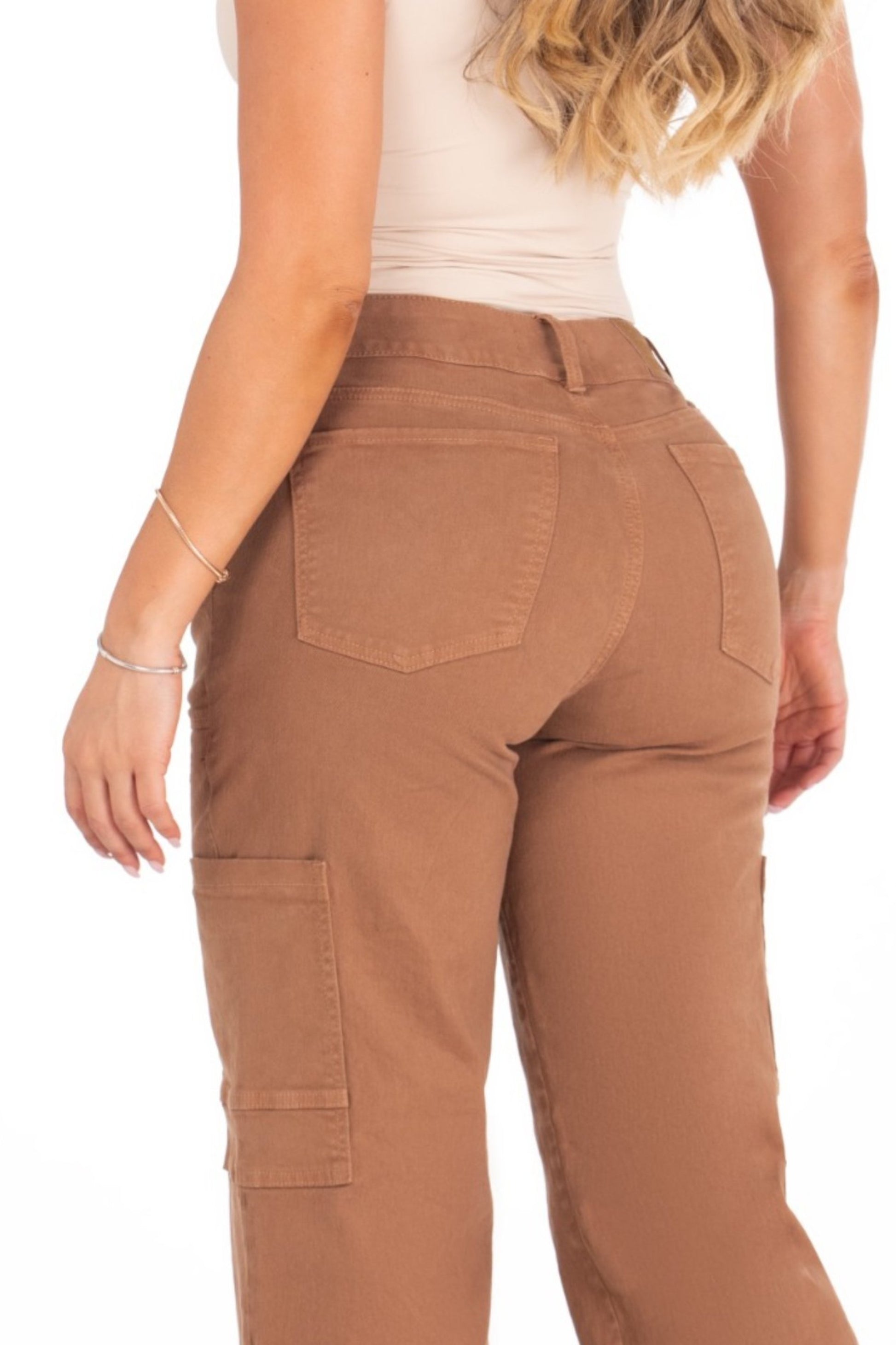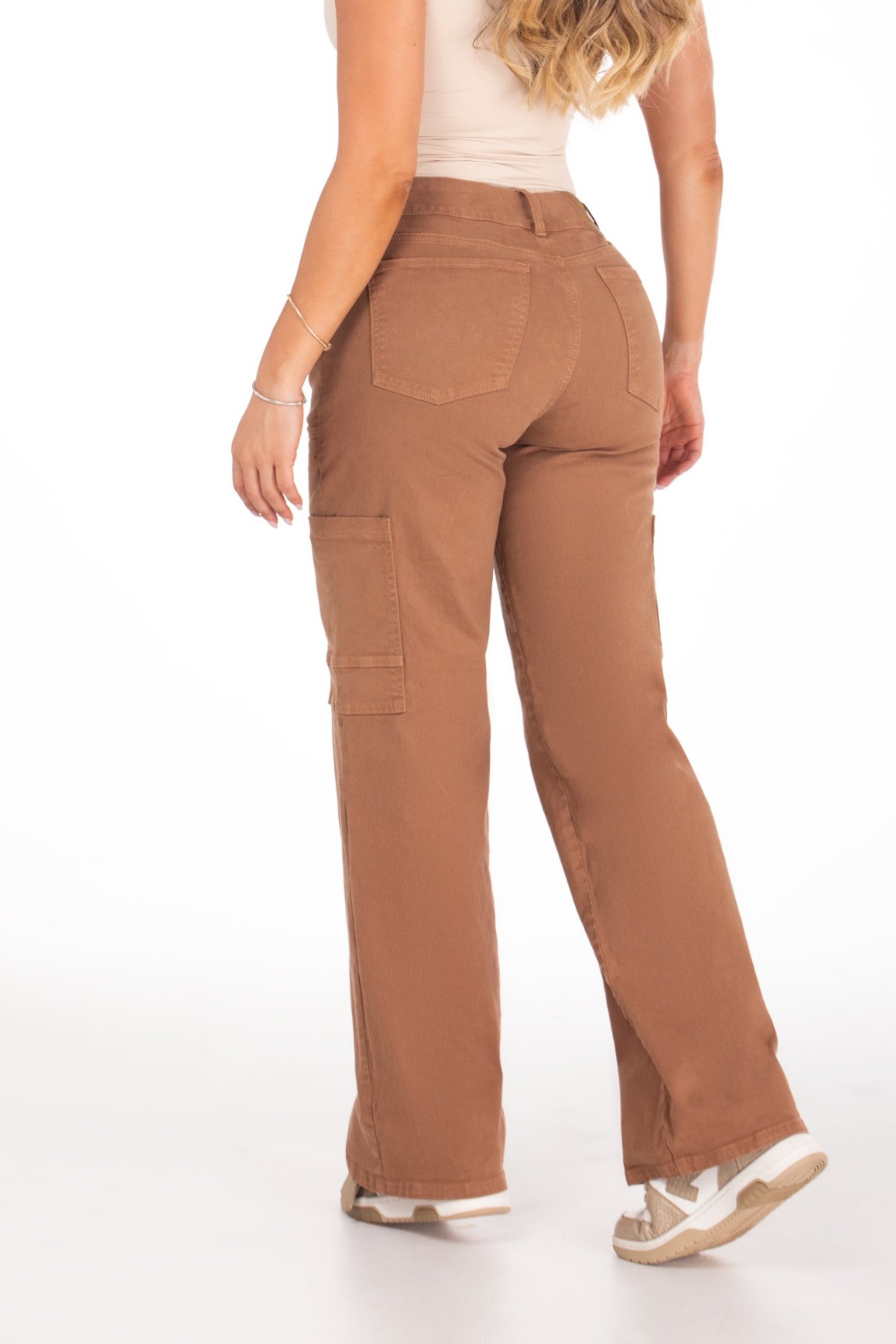 Incluye un botón metálico, diseño de seis bolsillos estilo cargo y acabado juvenil que realza la silueta.