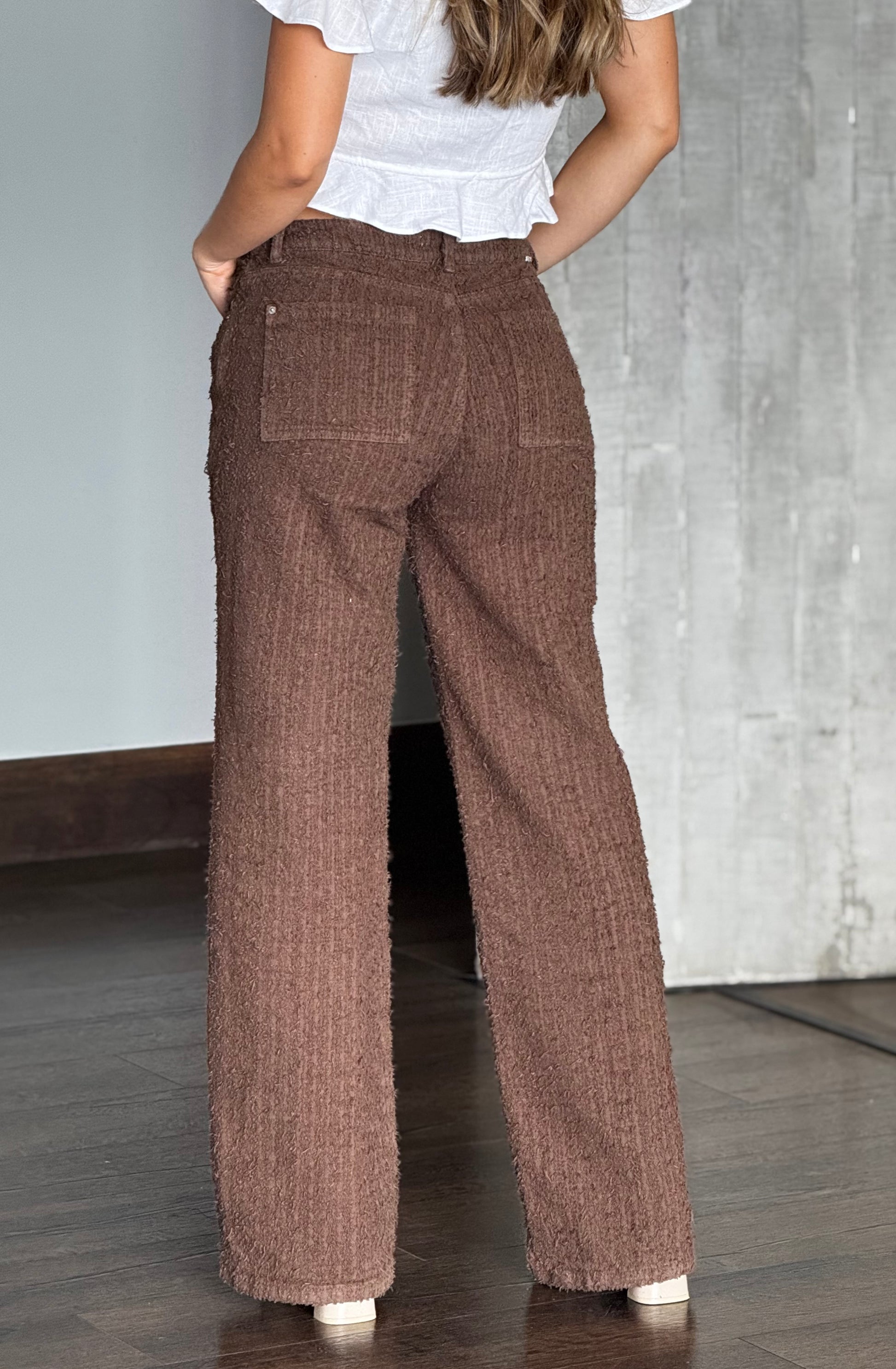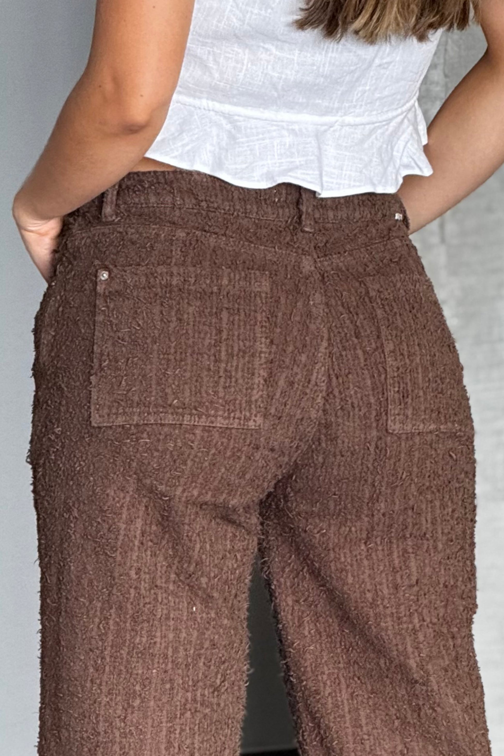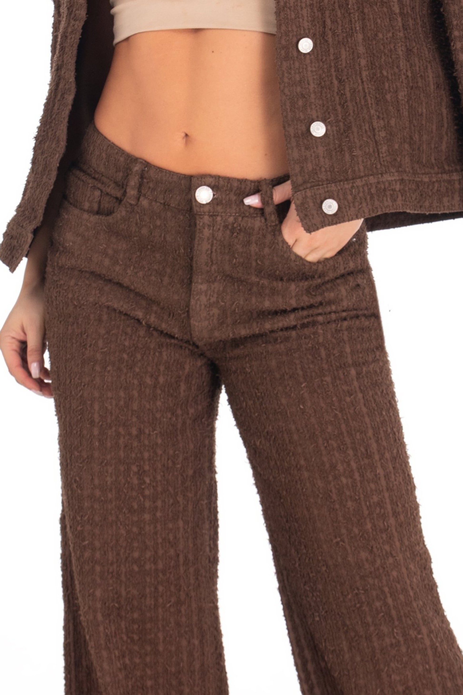 Jean Wide Leg Texturizado Rígido Café REF 125303