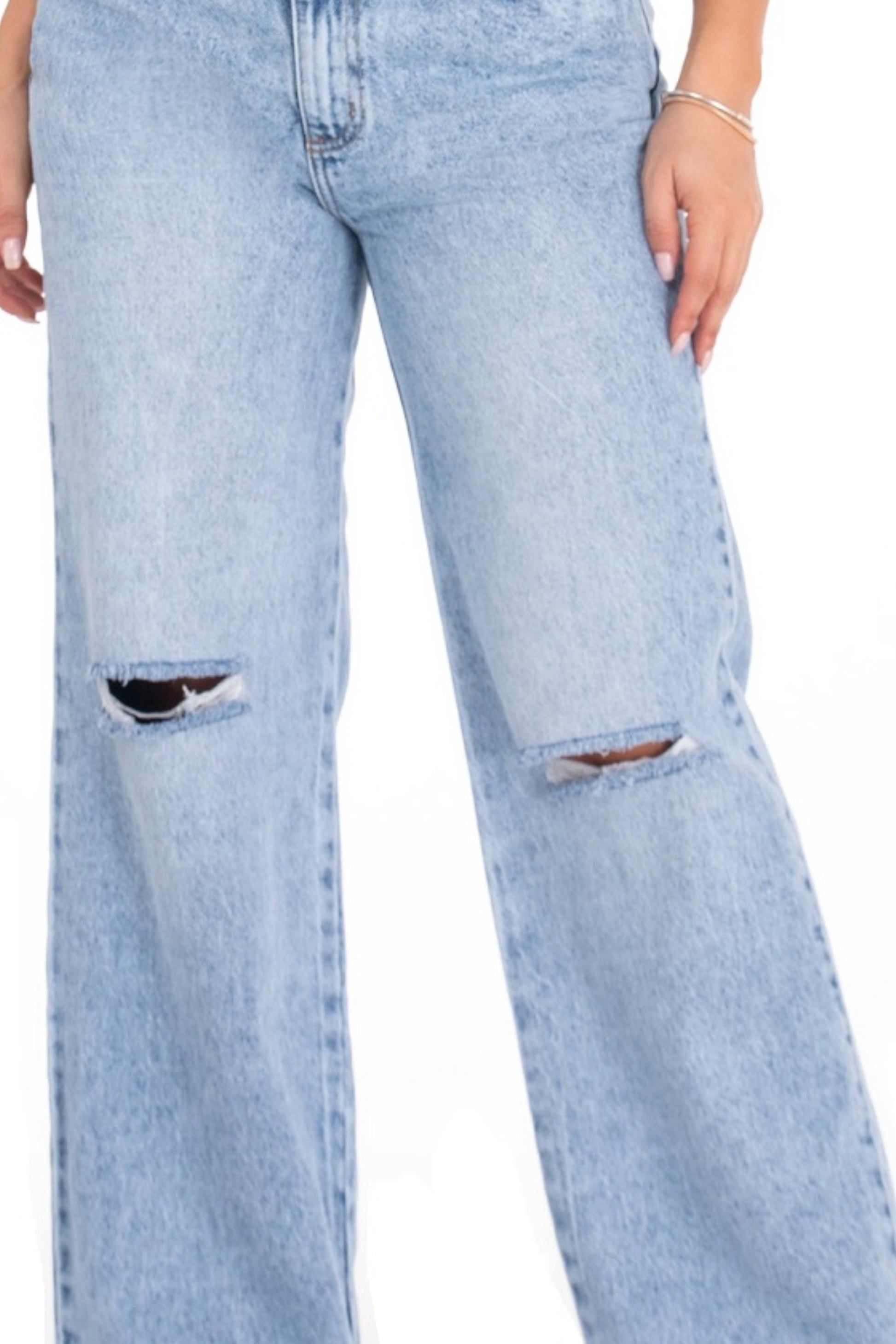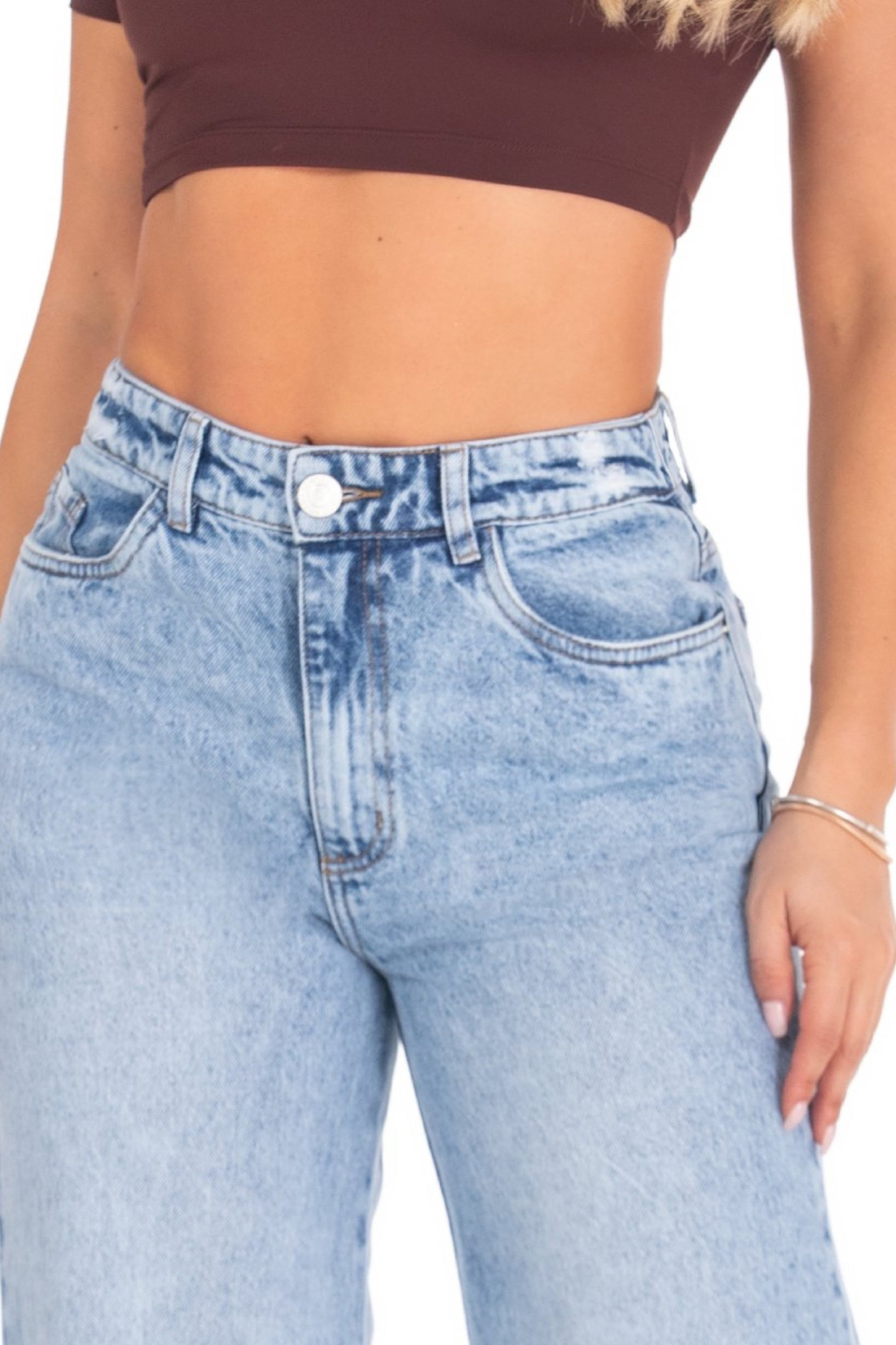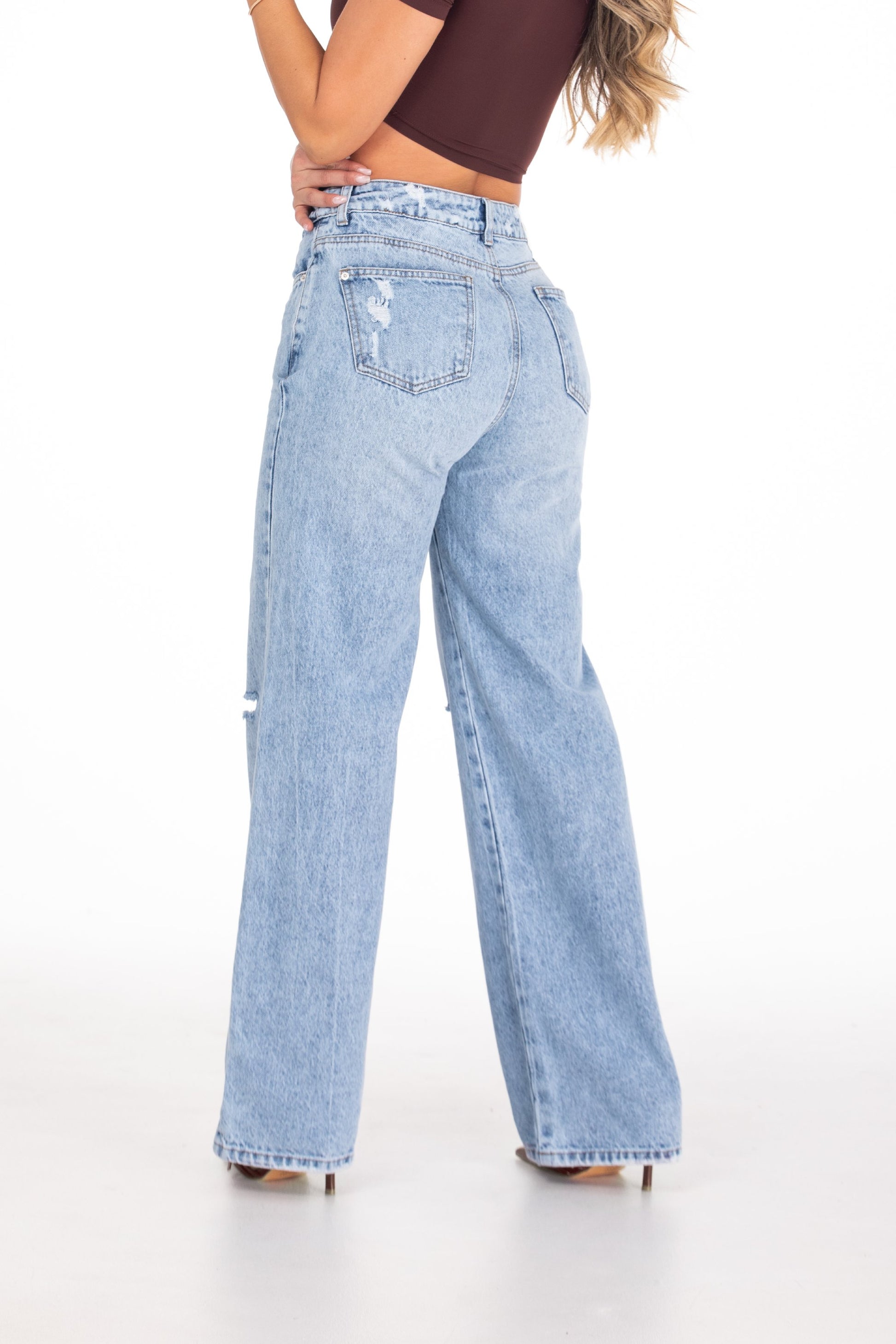 Jean Wide Leg Rigido Con Rotos Azul Claro REF 125231